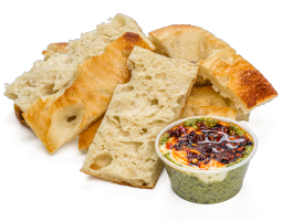 Want just the dip to take home? We have you covered! Perfect for dipping our sourdough focaccia. It features basil pesto, lemon ricotta, and chili flavours.